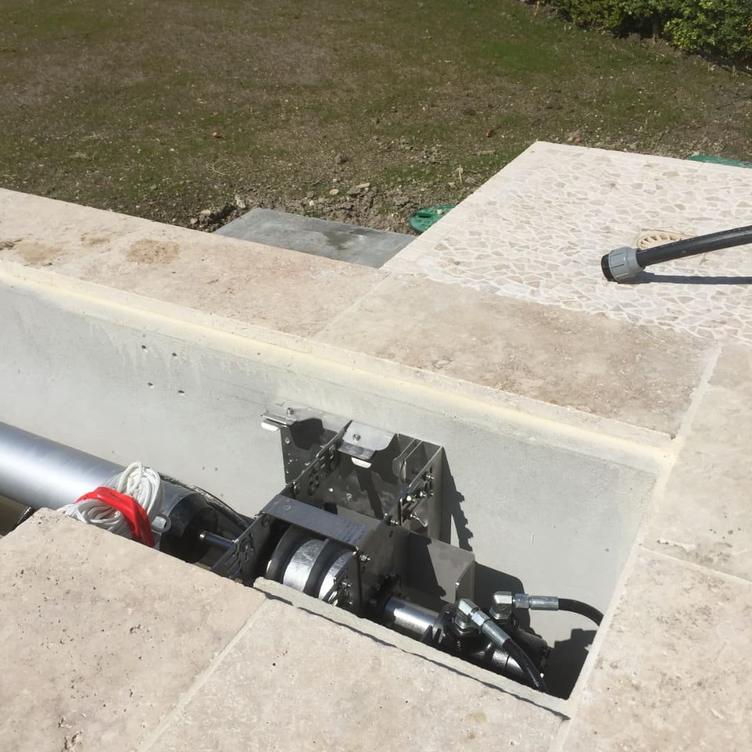 Mécanisme robuste et fluide : Le cœur du système est une centrale hydraulique sophistiquée, sans électricité au bord du bassin, reliée par des flexibles à un mécanisme d'enroulement à châssis en acier inoxydable (Inox). Ce choix de technologie assure un mouvement toujours fluide et une résistance supérieure à la corrosion et aux intempéries.