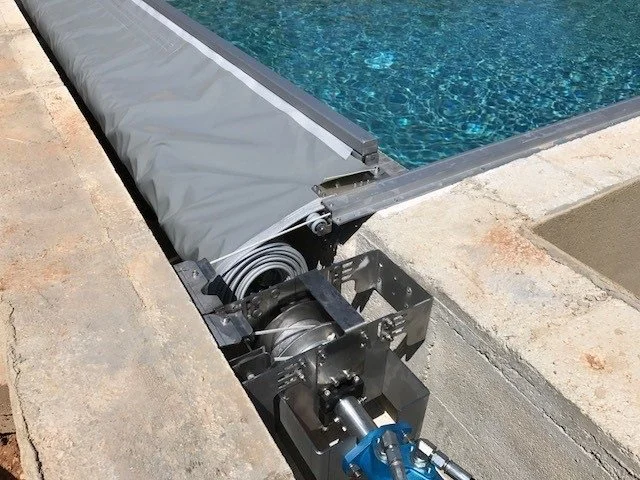 Rangement Discret : Le système s'enroule automatiquement autour d’un axe situé en bout de piscine, dissimulé dans un coffre de rangement discret. Ce coffre peut être enterré (intégration totale dans le neuf) ou hors-sol.